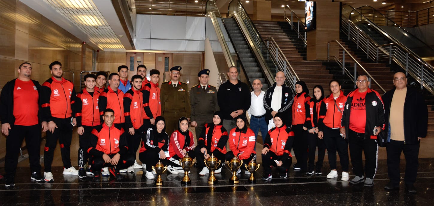 كما قام وفد من القوات المسلحة بإستقبال (5) أبطال من أبناء المؤسسات العسكرية الرياضية الذين حققوا المراكز الأولى فى البطولة العربية لرفع الأثقال والتى أقيمت بدولة قطر وشارك بها المنتخب القومى لرفع الأثقال ، حيث حقق لاعب رفع الأثقال بنادى المؤسسة العسكرية الرياضية بالأسكندرية الطالب / صادق محمد صادق (9) ميداليات متنوعة (4) فضية و(5) برونزية ، كما حقق لاعبى رفع الأثقال بنادى المؤسسة العسكرية الرياضية بالإسماعلية عدد من الميداليات المتنوعة حيث تمكن الطالب/ إياد محمد على إبراهيم من حصد (6) ميداليات برونزية ، وحققت اللاعبة/ ندا عبد اللطيف فتحى (6) ميداليات فضية ، كما حقق الطالب/ على عبد الراضى محمد (3) ميداليات ذهبية وفضية وبرونزية ، وحققت اللاعبة/ حنين السيد محمد (6) ميداليات ذهبية .