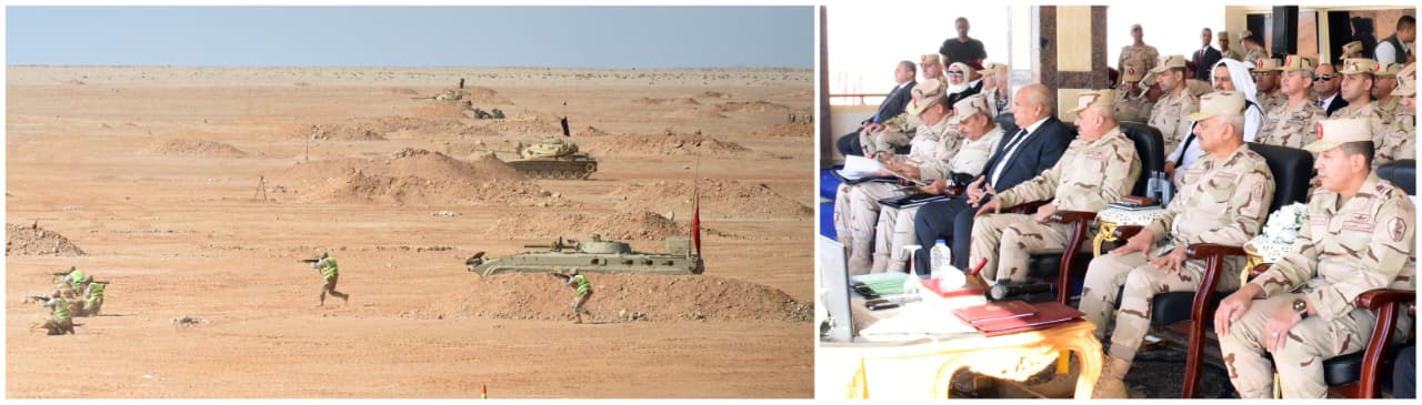 الفريق أول عبد المجيد صقر القائد العام للقوات المسلحة وزير الدفاع والإنتاج الحربى يشهد تنفيذ المرحلة الرئيسية للمشروع التكتيكى بجنود بالذخيرة الحية لإحدى وحدات المنطقة الغربية العسكرية