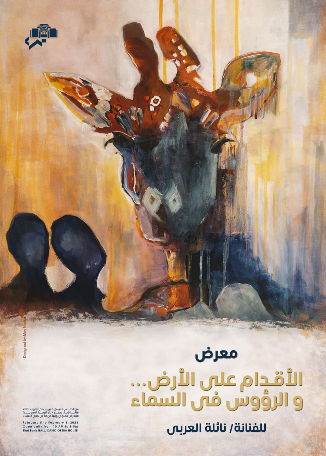 تقيم دار الأوبرا المصرية برئاسة الدكتور علاء عبد السلام معرضا بعنوان “الأقدام على الأرض والرؤوس فى السماء” للفنانة الدكتورة نائلة العربى ويفتتح في الساعة السادسة مساء الخميس 5 فبراير ويستمر حتى الجمعة 6 فبراير  وذلك بقاعة زياد بكير للفنون التشكيلية .