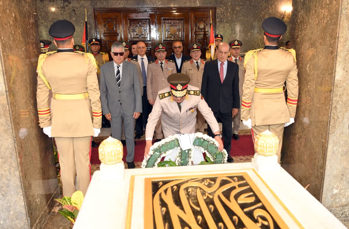 وقام الفريق أول عبد المجيد صقر بوضع إكليل من الزهور على ضريح الرئيس الراحل جمال عبد الناصر وقراءة الفاتحة ترحماً على روحه الطاهرة .
